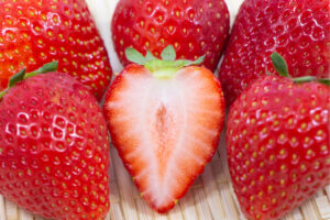 このいちご、大ぶりが多くて、きれいに真ん中から切ると、ハート型なんですね。