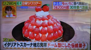 「ベリーベリーマルシェ」は、摘みたてフルーツや地元の食材にこだわった手作りスイーツを販売。番組では、「ズコット」ドーム型になった商品で4860円。カット810円。