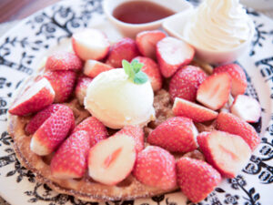 ビュッフェレストラン「いちご一会」、カフェ「アンジェ・フレーゼ」、スイーツ工房「マルシェ」、ケーキ工房「アン・サンク・ラボ」は、 摘みたてのフルーツや、地元の食材にこだわったお料理・スイーツをご提供してます。