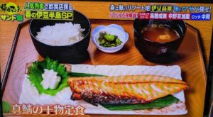 番組に登場した真鯖の干物・煮付け定食