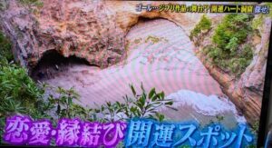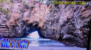 番組の最後に紹介されたのは、一行が辿り着いた下田の秘境「龍宮窟(りゅうぐうくつ)」です。そこに鎮座する「龍王社」なども魅力的ですね。「ハート型の海岸」が幻想的でしたね。ジブリ映画『紅の豚』の主人公・ポルコが隠れ家にしていたアジトのモデルらしいです。超話題の開運スポットと言われていますが、いや~、これは凄いね!