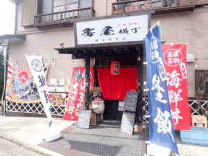 番屋横丁は静岡県伊東市八幡野にあり、伊豆高原駅から徒歩約10分の立地です。観光地として人気の伊豆高原エリアにありながら、気取りすぎない大衆酒場らしい雰囲気が魅力で、旅のランチにも夜の食事にも立ち寄りやすい店です。