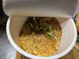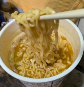 程よい歯ごたえで、スープに負けない存在感。すすり心地が良く、カップ麺っぽさの中に「ちゃんと食べてる感」があります。