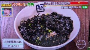 カルビ専用ごはんが473円。韓国のりがたっぷり載った一品。これは牛角ならでしょう。