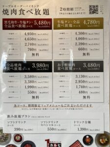 「2時間食べ放題コース 4,708円(税込)」は、「全品焼肉食べ放題コース」の価格設定です。