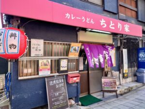 店の外観は、今も昭和の面影を色濃く残しています。テントには大きく「カレーうどん」の文字。通りかかるたびに気になっていたという人も多く、「ついつい立ち寄ってしまう」という声が後を絶ちません。そのたたずまいは、まるで時間が止まったかのようなノスタルジックな空気をまとっており、それ自体がひとつの魅力になっています。