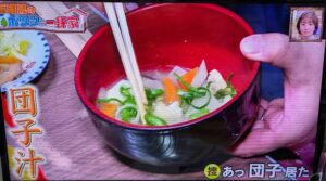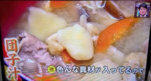 手作りの団子汁。具材たっぷり。美味しそうでした。他には、長男の奥さんの手作りの切り干し大根やらたくあん、白菜の漬物など。