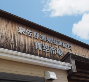 泉佐野漁協の案内では、隣接施設の海鮮焼処は「手ぶらで気軽に」がコンセプトで、食材は隣接の青空市場で購入→焼く、という流れ。