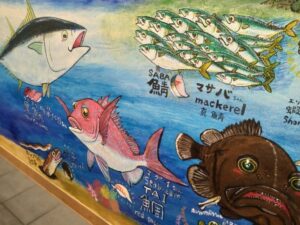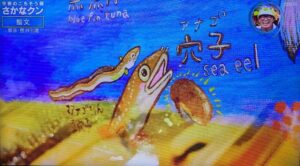 店内にはさかなクンが手描きの魚たちや穴子の絵も飾られています。