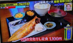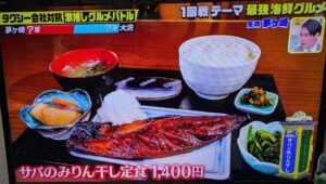 本日は「タクうま」から、情報をお届けしました。この番組は好きですね。筆者は関西在住なので、紹介されたお店に実際に足を運んだこともあります。今回の対決では、「サバのみりん干し定食」のほうが評価が高く、勝者でした。値段もお手頃ですからね!