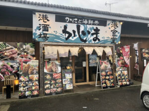 「港食堂 かにと海鮮丼 かじま」 は、茨城県大洗町の大洗魚市場のすぐそばにある人気の海鮮食堂です。魚市場や港町らしい雰囲気の中で、新鮮な海鮮・蟹料理を手頃な価格で楽しめるお店として知られています。