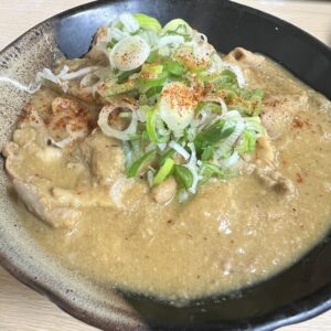 どろっと濃厚な味噌スープに、ニンニクのパンチがガツンときいていて、白ご飯にかけてかき込みたくなるタイプ。もちろんキャベツの千切りとの相性も抜群です。