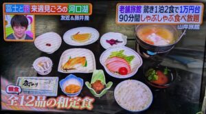 番組でも紹介されたこの旅館の看板プラン。牛肉・お野菜・お豆腐・ごはん付き。すべて食べ放題で、時間は90分。「コスパよすぎ!」と友近さんも大興奮だったのが、うなずける内容です。